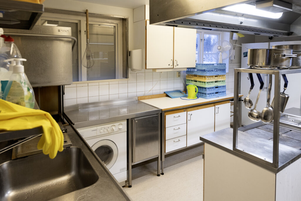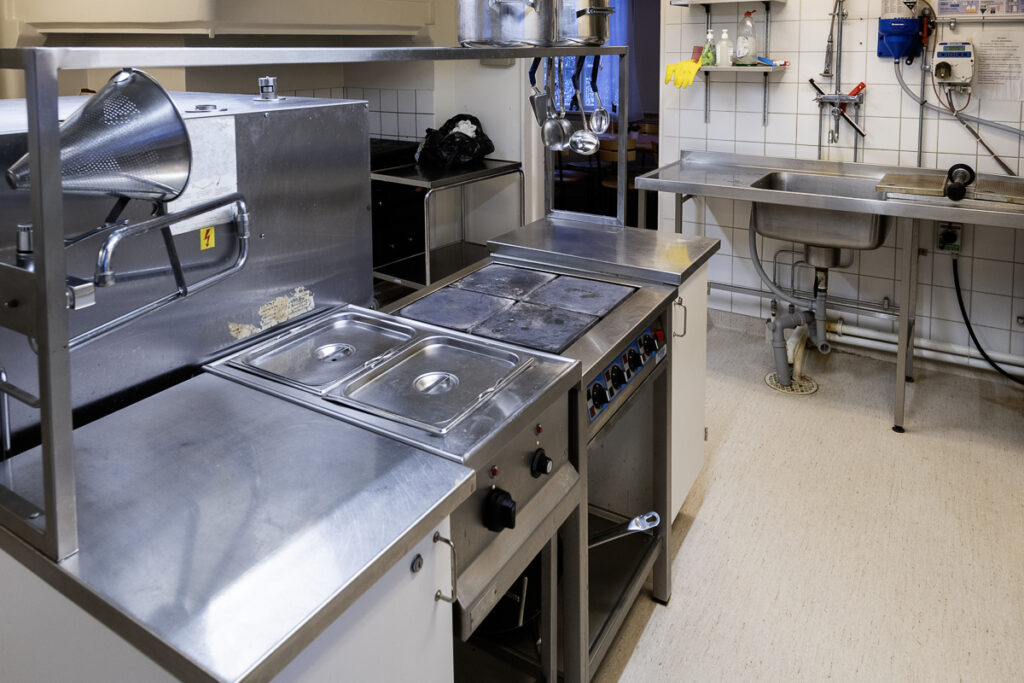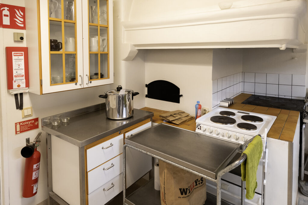 Köket är ett mindre restaurangkök som ä fullt utrustat för matlagning. Här finns stekhällar, varmluftsugnar, mm. I köket finns också en väl tilltagen diskmaskin. Här finns också termosar mm som behövs vid kaffeservering.